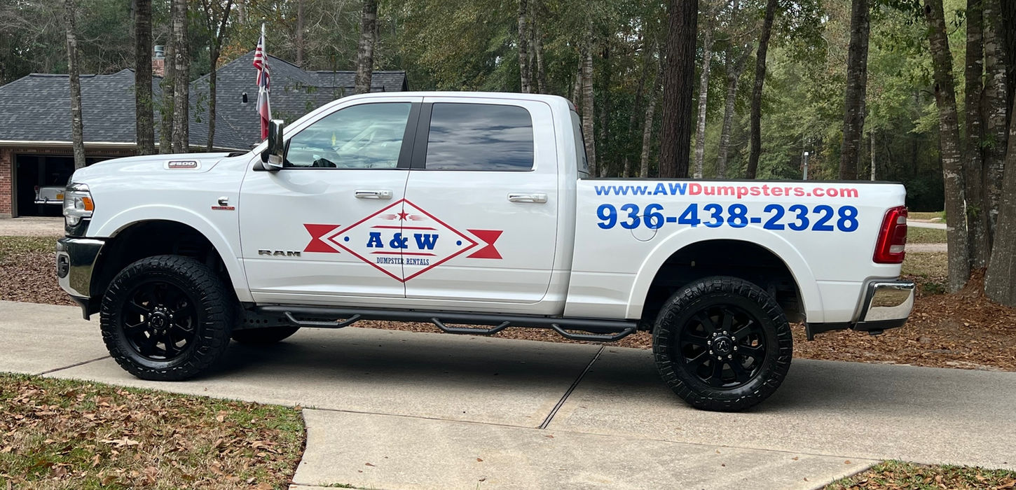 We provide driveway-friendly sized roll-off dumpster rentals. Our roll-off dumpster rentals service Montgomery County and surrounding areas. We are Veteran owned, get to you fast, are affordable, and provide first-class customer service. Whether you’re a homeowner doing some renovations, or a contractor needing a high volume of dumpster rentals, the good guys at A&W Dumpster Rentals can help! Call us today to learn more about our roll-off dumpster rentals and to get a quote, or browse our website to book online with a few simple clicks.